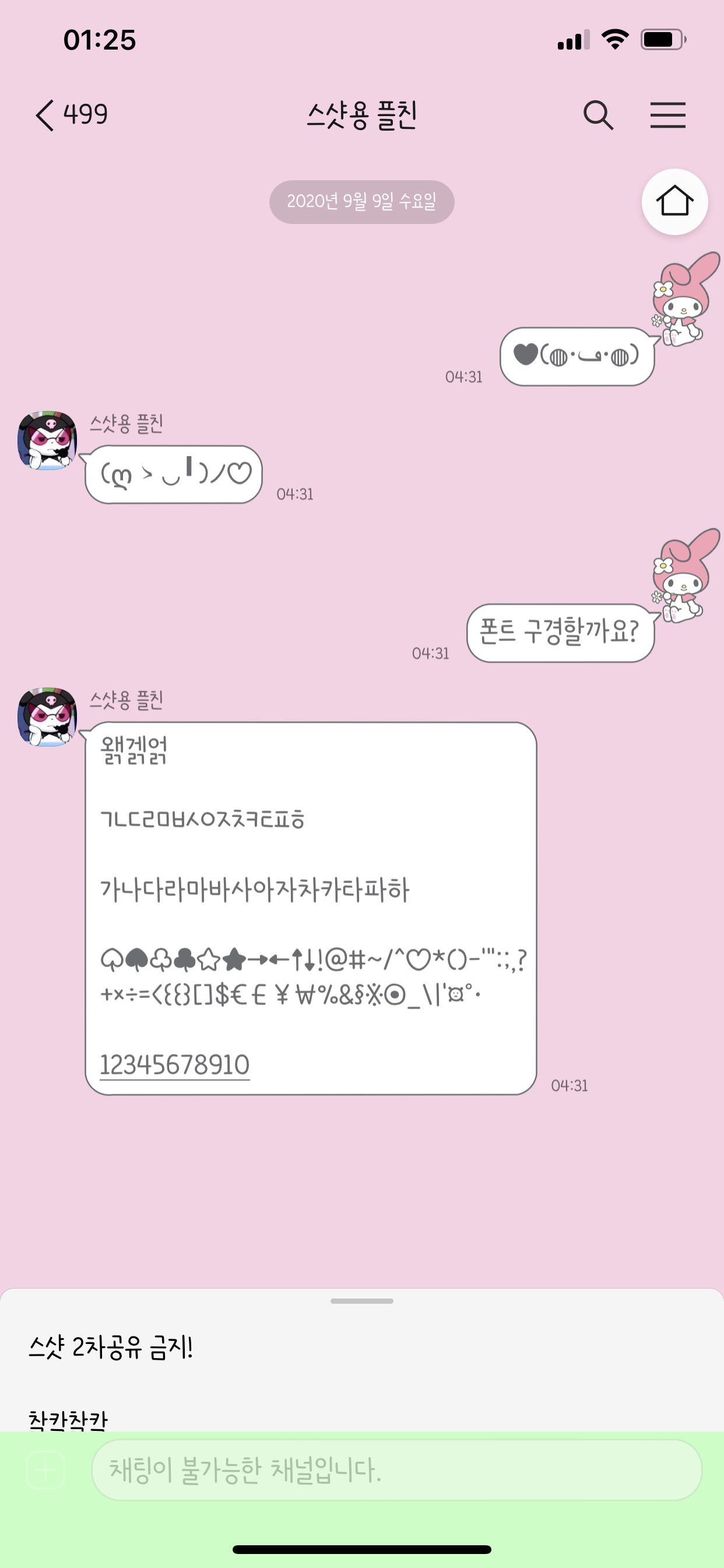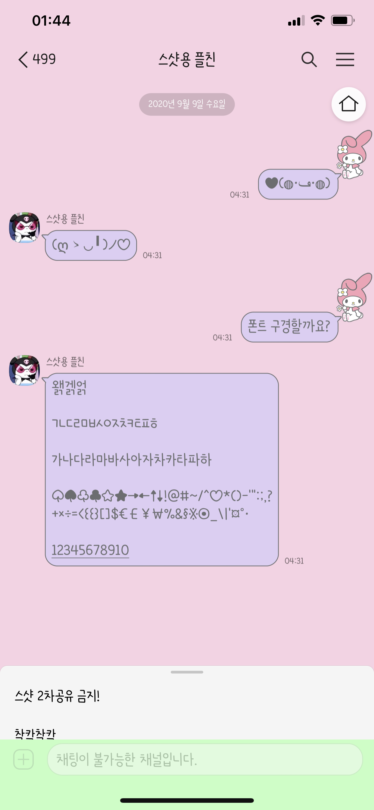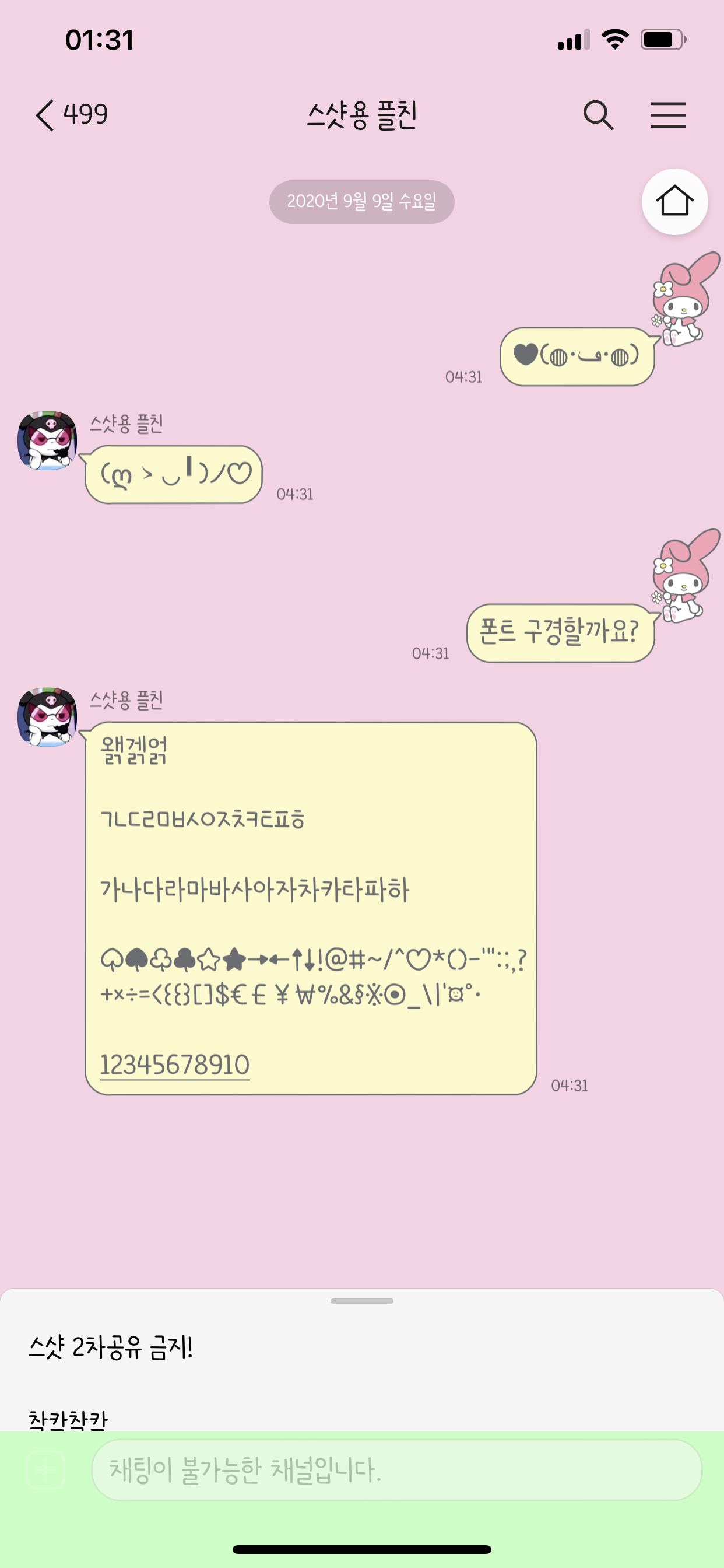 개인적으로 이번 마이멜로디 카톡테마 말풍선 색상 중에서 제일 마음에 드는 컬러에요