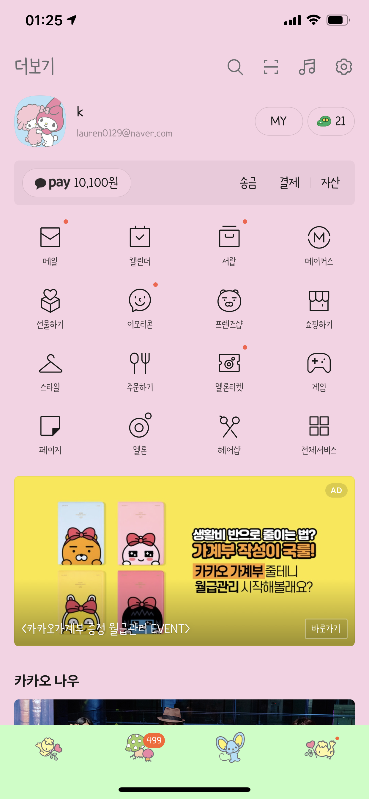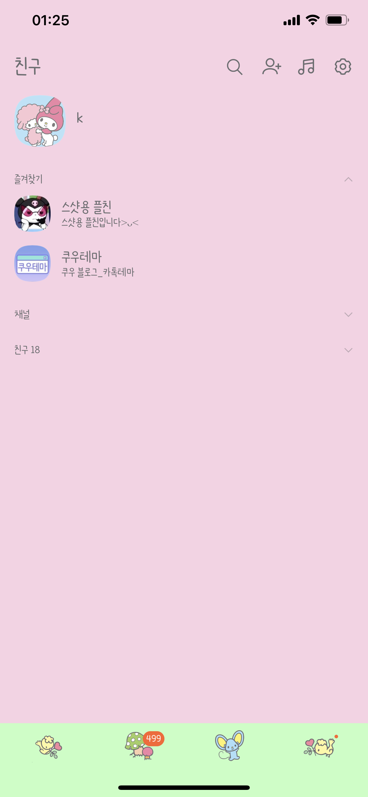 그래서 저번 마이멜로디 카톡테마의 메뉴바에 게임 메뉴가 없어졌다 생각하시면 돼요~